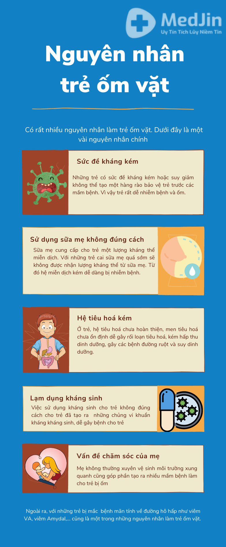 Trẻ hay ốm vặt là những trẻ mà hầu như tháng nào cũng ốm và thường phải dùng thuốc mới khỏi được. Tuy nhiên, mức độ bệnh lại không quá nặng nhưng tái đi tái lại nhiều lần. Việc này làm cho cha mẹ rất lo lắng và tốn nhiều công sức. Để tìm hiểu, chúng ta đi đến từng nguyên nhân gây ra tình trạng này cho trẻ: